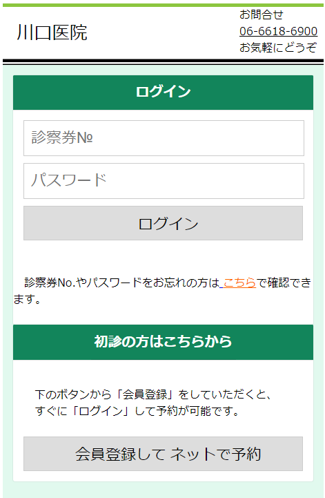 | ホームページがなくてもWeb予約のみで動きます。 診察券番号とパスワードが必要ですが、初期セットするパスワードを生年月日にすれば、すぐにWeb予約が動きます。 「繰上希望」も標準装備・・・予約時間より早くに診察可能ならボタン一つでメール連絡 「お待たせしません」が、合言葉のWeb予約は、口コミで広まります。 初診の方も、すぐに「インターネット予約(時間枠)」ができます。 | |